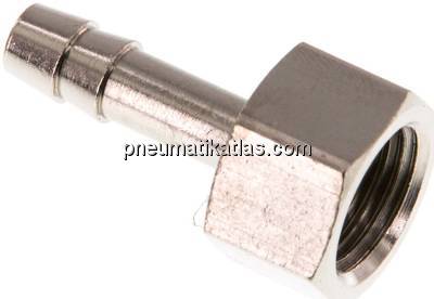 Werkstoff: Messing vernickelt Gewinde: G 1/4" Schlauch Ø innen: 6 (1/4") MMSW: 17 MMPN: 16 BARGewicht: 0,016 KG
