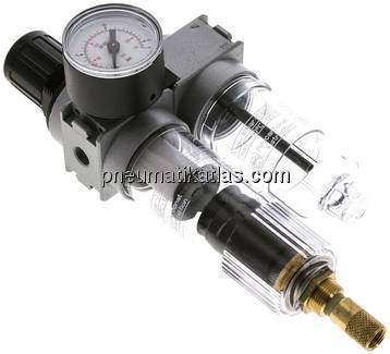 Filterregler rücksteuerbar, mit angebautem Öler (Baureihe 0 mit Micro-Nebelöler)
