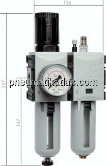 Ausführung mit Metallbehälter und Sichtrohr -M, Ablassautomatik -AM, Ablassautomatik drucklos geschlossen (0 - 16 bar) -AMNC, Sicherheitsausführung: mit vorgeschaltetem, abschließbaren Kugelhahn und Befüllventil -Si