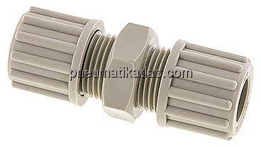 Der Schlauch wird über die feste Schlauchtülle in die Verschraubung geschoben und mit einer Schneid-Dichtring-Kombination durch Anziehen der Rändelmutter arretiert. Alle Gewinde und Schlauchtüllen (für Schlauchaufnahme) sind nahtfrei.
