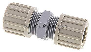 Der Schlauch wird über die feste Schlauchtülle in die Verschraubung geschoben und mit einem elastischen Klemmring durch Anziehen der Rändelmutter arretiert. Der elastische Klemmring ermöglicht es, innerhalb der gleichen Verschraubung mehrmals verwendet zu werden. Das bedeutet, die Verschraubung kann gelöst werden und mit dem gleichen Klemmring wieder dicht geschlossen werden. Alle Gewinde und Schlauchtüllen (für Schlauchaufnahme) sind nahtfrei.