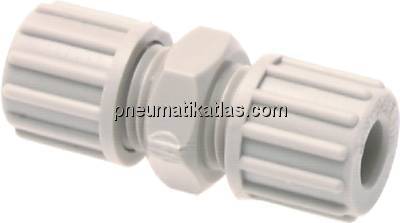 *Bei PFA- und PTFE-Schläuchen empfehlen wir einen Austausch des Klemmrings gegen eine Schneid- und Dichtringkombination (KL..PP), **Rändelmutter und Klemmring in PP, ***Grundmaterial FDA-zugelassen