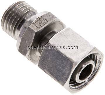 Stahlverschraubungen: Körper: Stahl verzinkt, ggf. vorhandene Elastomerdichtung: NBR, Edelstahlverschraubungen & NC-Klemmringverschraubungen: Körper: 1.4571, ggf. vorhandene Elastomerdichtung: FKM