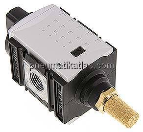 3/2-Wege Absperrventil mit gefasster Abluft. Im geschlossenen Zustand mit Vorhangschloss VHS 20 abschließbar.