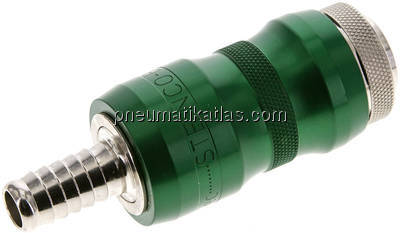 Diese Sicherheitskupplung ist eine Kombination aus Handschiebeventil und Schnellverschlusskupplung. Nur wenn durch die Schiebehülse die Steckerseite entlüftet wurde, lässt sich die Kupplung lösen. Die Schiebehülse kann nur im gekuppelten Zustand bewegt werden und funktioniert wie ein 3/2-Wege Handschiebeventil.