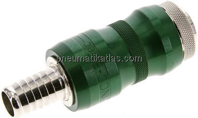 Diese Sicherheitskupplung ist eine Kombination aus Handschiebeventil und Schnellverschlusskupplung. Nur wenn durch die Schiebehülse die Steckerseite entlüftet wurde, lässt sich die Kupplung lösen. Die Schiebehülse kann nur im gekuppelten Zustand bewegt werden und funktioniert wie ein 3/2-Wege Handschiebeventil.