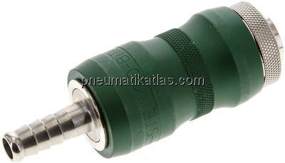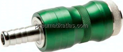 Diese Sicherheitskupplung ist eine Kombination aus Handschiebeventil und Schnellverschlusskupplung. Nur wenn durch die Schiebehülse die Steckerseite entlüftet wurde, lässt sich die Kupplung lösen. Die Schiebehülse kann nur im gekuppelten Zustand bewegt werden und funktioniert wie ein 3/2-Wege Handschiebeventil.