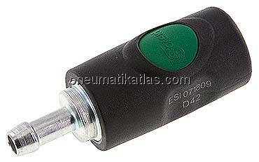Kupplungskopf ist positionierbar - nach dem Einschrauben kann der Druckknopf an eine ergonomisch optimale Position gedreht werden, Sicherheitsfunktion wird über den Restdruck auf der Steckerseite gesteuert (nur Typ Kunststoff), antistatisch, erfüllt ATEX 2 Standard (keine potentielle Zündquelle) und ist daher in Lackierkabinen, Gasumgebungen oder Getreideumfüllungen einsetzbar (nur Typ Kunststoff), Kunststoffkörper verhindert Verkratzen von Oberflächen (nur Typ Kunststoff), silikonfrei gefertigt (nur Typ Kunststoff)
