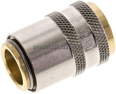 Anschluss, Ventil, Ventilkörper und Entriegelungshülse: Messing oder 1.4305, Feder, Sprengring und Verriegelungskugeln: Edelstahl, Dichtungen: FKM (PTFE-beschichtet)