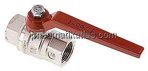 Gehäuse: Messing vernickelt, Kugel: Messing hartverchromt, Dichtung: PTFE, Griff: Aluminiumdruckguss