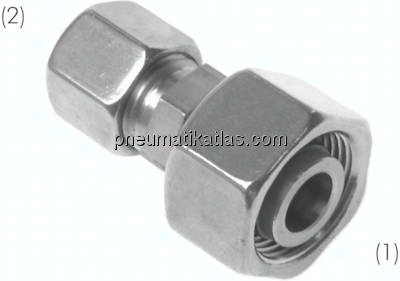 Kompatibel zu jeder Schneidringverschraubung nach DIN EN ISO 8434-1 (DIN 2353). Widersteht auch dynamischen Belastungen wie Schwingungen und Pulsationen. Kann beliebig oft gelöst und wieder verschraubt werden. NC-Klemmring ist im Gegensatz zu einem Schneidring nicht gehärtet, daher kann er nicht rosten und besitzt eine gute chemische Resistenz. Eine Schmierung des Muttergewindes ist aufgrund einer Silberbeschichtung bei der Erstmontage nicht notwendig., Vakuumdichtheit Q< 10^8 mbar l/s, Ideal für den Einsatz im Gas- und Wasserbereich