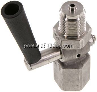 Manometer Absperrhähne werden eingesetzt um Druckmessgeräte vor Druckspitzen und Vibrationen zu schützen.Der Hebel kann auf "Durchgang" - Druck steht am Messgerät an, "Absperrung" - Druckmessgerät ist von der Versorgungsleitung getrennt, aber nicht entlastet oder "Absperrung mit Entleerung" - Druckmessgerät ist von der Versorgungsleitung getrennt und der Raum zwischen Hahn und Druckmessgerät ist in die Atmosphäre entlastet gestellt werden. Für höhere Drücke oder aggressive Medien empfehlen wir die Verwendung von Manometer Absperrventilen.