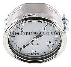 Startseite » Druckregler - Manometer - Thermometer - Aufbereiten » Einbaumanometer (auch für Vakuum) » Einbaumanometer mit Dreikant-Frontring Ø 100 mm, Edelstahl / Messing - Robust, Klasse 1,0 » Einbaumanometer, 3-kant-Frontring, 100mm, 0 - 16 bar