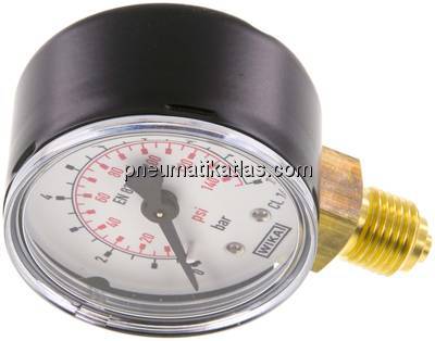 1. Skala außen (schwarz), Anzeige in bar, 2. Skala innen (rot), Anzeige in PSI