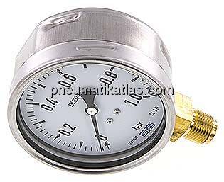 Manometer senkrecht (CrNi/Ms), 100mm, 0 - 1 bar