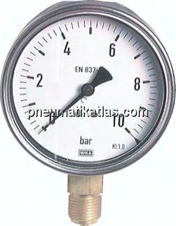 Startseite » Druckregler - Manometer - Thermometer - Aufbereiten » Manometer, senkrecht (auch für Vakuum) » Manometer senkrecht Ø 100 mm, Edelstahl / Messing - Robust, Klasse 1,0 » Manometer senkrecht (CrNi/Ms), 100mm, 0 - 25 bar