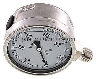 Chemie-Glycerin-Manometer senkrecht,100mm, 0 - 25 bar