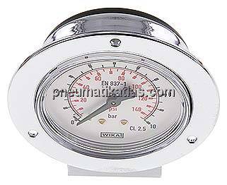 Einbaumanometer (CrNi/Ms), Frontring, 63mm, 0 - 10 bar