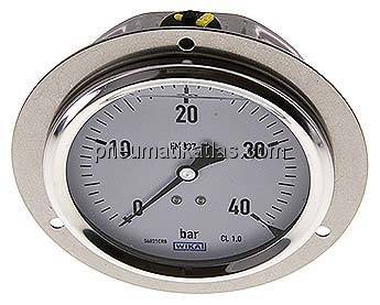 Gehäuse: 1.4301, Frontring: 1.4301, Messsystem: Cu-Legierung (Ø 63 Drücke > 400 bar: 1.4404, Ø 100 Drücke >= 100 bar: 1.4404), Anschluss: Messing, Sichtscheibe: Polycarbonat