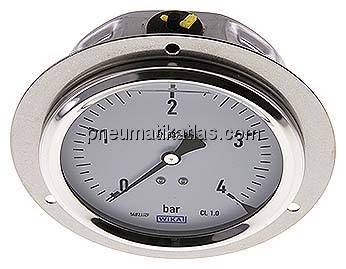 1. Skala außen (schwarz), Anzeige in bar, 2. Skala innen (rot), Anzeige in PSI (Ø 100: Anzeige in bar)