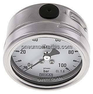 Startseite » Druckregler - Manometer - Thermometer - Aufbereiten » Manometer, waagerecht (auch für Vakuum) » Manometer waagerecht Ø 63, 100 mm, Edelstahl - Chemie, Klasse 1,6 / 1,0 » Chemie-Manometer waagerecht, 63mm, 0 - 100 bar