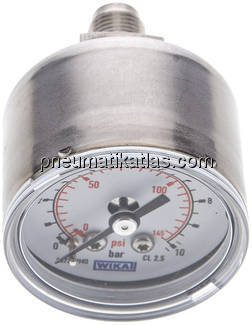 Startseite » Druckregler - Manometer - Thermometer - Aufbereiten » Manometer, waagerecht (auch für Vakuum) » Manometer waagerecht Ø 40, 50 mm, Edelstahl, Klasse 2,5 » ES-Manometer waagerecht, 40mm, 0 - 10 bar, G 1/8"
