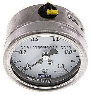 Startseite » Druckregler - Manometer - Thermometer - Aufbereiten » Manometer, waagerecht (auch für Vakuum) » Manometer waagerecht Ø 63, 100 mm, Edelstahl - Chemie, Klasse 1,6 / 1,0 » Chemie-Manometer waagerecht, 63mm, 0 - 1 bar