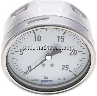 Manometer waagerecht (CrNi/Ms), 100mm, 0 - 25 bar