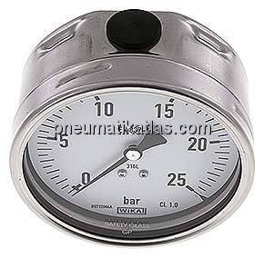 Startseite » Druckregler - Manometer - Thermometer - Aufbereiten » Manometer, waagerecht (auch für Vakuum) » Manometer waagerecht Ø 63, 100 mm, Edelstahl - Chemie, Klasse 1,6 / 1,0 » Chemie-Manometer waagerecht, 100mm, 0 - 25 bar