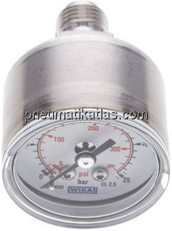 Startseite » Druckregler - Manometer - Thermometer - Aufbereiten » Manometer, waagerecht (auch für Vakuum) » Manometer waagerecht Ø 40, 50 mm, Edelstahl, Klasse 2,5 » ES-Manometer waagerecht, 40mm, 0 - 25 bar, G 1/4"
