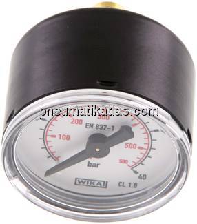 Startseite » Druckregler - Manometer - Thermometer - Aufbereiten » Manometer, waagerecht (auch für Vakuum) » Manometer waagerecht Ø 40, 50, 63 mm, Klasse 2,5 » Manometer waagerecht (ST/Ms), 40mm, 0 - 40 bar, G 1/8"