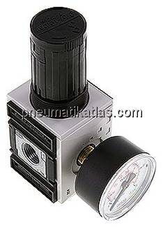 *Standardbaureihe, bitte bevorzugt einsetzen, da Druckregelbereich universell einsetzbar, **geringer Eigenluftverbrauch (2,6 l/min bei 6 bar Ausgangsdruck) dafür aber bessere Hysterese - nahezu unabhängig von Primärdruck, Regelgenauigkeit: ± 25 mbar
