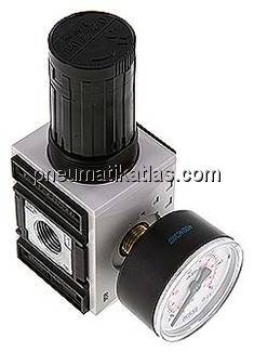 *Standardbaureihe, bitte bevorzugt einsetzen, da Druckregelbereich universell einsetzbar, **geringer Eigenluftverbrauch (2,6 l/min bei 6 bar Ausgangsdruck) dafür aber bessere Hysterese - nahezu unabhängig von Primärdruck, Regelgenauigkeit: ± 25 mbar