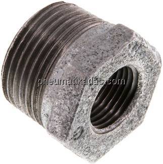 Werkstoff: Temperguss verzinkt Gewinde außen: R 1" Gewinde innen: Rp 1/2" PN: 25 BARGewicht: 0,115 KG