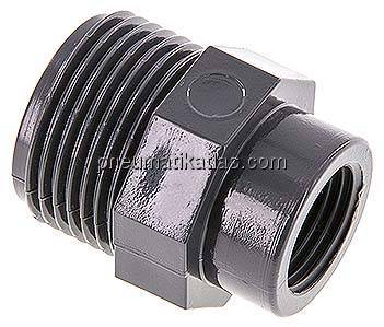 Startseite » Gewindefittings » Reduziernippel » Reduziernippel mit zylindrischem Außen- & Innengewinde, PVC-U (nur für Kunststoffgewinde), PN 16 » Reduziernippel G 1"(AG)-Rp 1/2"(IG), PVC-U