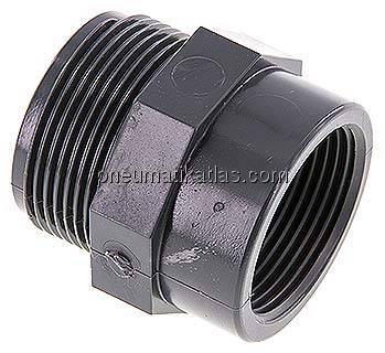 Startseite » Gewindefittings » Reduziernippel » Reduziernippel mit zylindrischem Außen- & Innengewinde, PVC-U (nur für Kunststoffgewinde), PN 16 » Reduziernippel G 1-1/2"(AG)-Rp 1-1/4"(IG), PVC-U