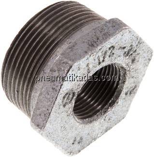 Werkstoff: Temperguss verzinkt Gewinde außen: R 1-1/2" Gewinde innen: Rp 3/4" PN: 25 BARGewicht: 0,175 KG