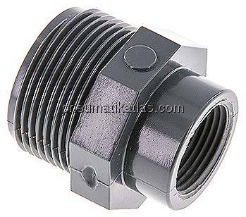 Startseite » Gewindefittings » Reduziernippel » Reduziernippel mit zylindrischem Außen- & Innengewinde, PVC-U (nur für Kunststoffgewinde), PN 16 » Reduziernippel G 1-1/4"(AG)-Rp 3/4"(IG), PVC-U