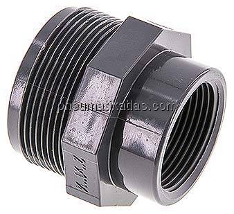 Startseite » Gewindefittings » Reduziernippel » Reduziernippel mit zylindrischem Außen- & Innengewinde, PVC-U (nur für Kunststoffgewinde), PN 16 » Reduziernippel G 2"(AG)-Rp 1-1/4"(IG), PVC-U