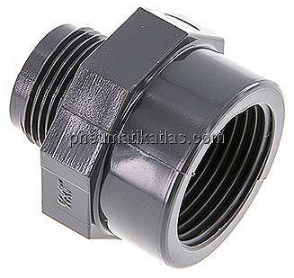 Startseite » Gewindefittings » Reduziernippel » Reduziernippel mit zylindrischem Außen- & Innengewinde, PVC-U (nur für Kunststoffgewinde), PN 16 » Reduziernippel G 3/4"(AG)-Rp 1"(IG), PVC-U
