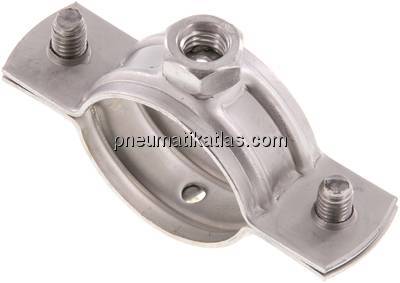 Typ mit Einlage: Schallschutz für DIN 4109, Rohrschelle wird vor der Rohrmontage seitlich aufgeklappt, daher leichtes Einlegen des Rohres, durch sicheres Einrasten kann das Rohr vormontiert und vor dem Festziehen der Schelle justiert werden