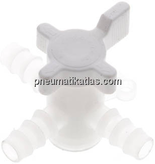 Werkstoffe: Gehäuse: PVDF, Küken und Griff: PVDF / PTFE Temperaturbereich: 0°C bis +40°C Betriebsdruck: 0 bis 1 bar