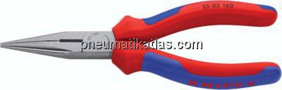 Flachrundzangen mit gezahnten Greifflächen, induktiv gehärteten Schneiden (ca. 61 HRC) eignen sich zum Schneiden von weichem und hartem Draht. Bauform Storchschnabelzange mit verwindungstoleranten, elastischen Präzisionsspitzen.