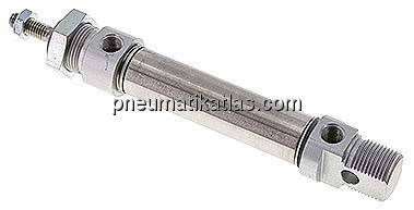 Kopf und Fuß: Aluminium eloxiert, Zylinderrohr: 1.4301, Kolbenstange: 1.4305, Dichtung: NBR / PUR
