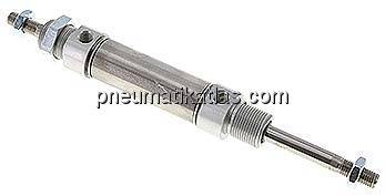 Kopf und Fuß: Aluminium eloxiert, Zylinderrohr: 1.4301, Kolbenstange: 1.4305, Dichtung: NBR / PUR