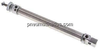 Kopf und Fuß: Aluminium eloxiert, Zylinderrohr: 1.4301, Kolbenstange: 1.4305, Dichtung: NBR / PUR