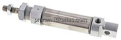 Kopf und Fuß: Aluminium eloxiert, Zylinderrohr: 1.4301, Kolbenstange: 1.4305, Dichtung: NBR / PUR